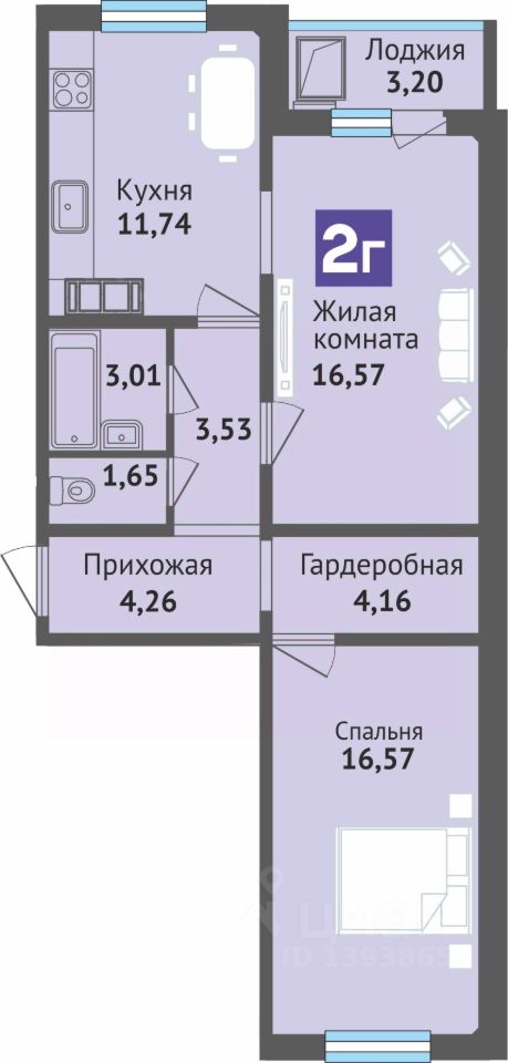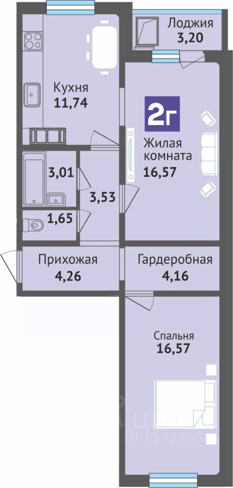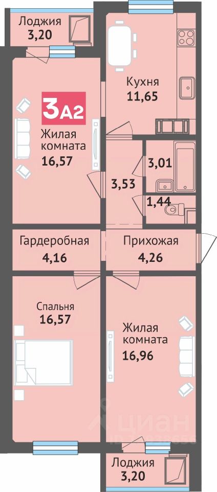 65 м² · Этаж 14 из 16