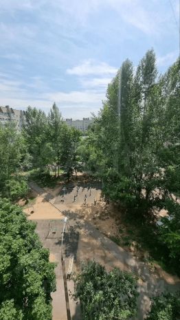 Уютное место расположение квартиры с видом на улицу. По близости расположен детский сад. Квартира состоит из двух комнат смежных. Дверь подъезда оснащена домофоном.