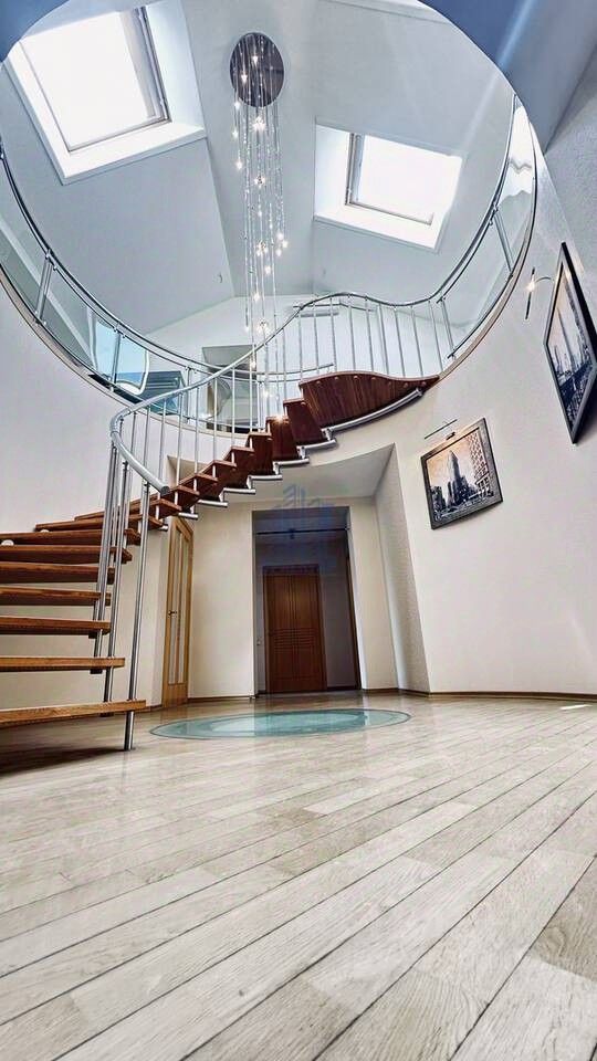При входе в квартиру складывается впечатление, что вы попадаете в большой загородный дом. Входя в просторную прихожую, справа остается гардеробная, а с левой стороны попадаете в большую кухню-столовую площадью 27 кв. м, оборудованную вместительным кухонным гарнитуром с встроенной техникой. Также кухня оборудована лифтом для прямой подачи блюд в гостевую столовую, расположенную над кухней. Прямо по направлению из прихожей вы попадаете в холл , где расположена красивая винтовая лестница, ведущая на второй ярус квартиры. По левую и правую стороны холла находятся две просторные спальные комнаты по 30 кв. м., далее две вентилируемые гардеробные с большим настенным зеркалом, прачечная и большая ванная комнатой с выходом на лоджию. Поднимаясь вверх по лестнице вы попадаете в большую гостиную 70 кв.м., оборудованную камином и аквариумом. Также на втором этаже расположены гостевая столовая, кабинет, спальная комната, санузел и котельная. Панорамные окна обеспечивают естественное дневное освещение и позволят любоваться проплывающими облаками. С верхнего этажа открывается потрясающий вид на реку Волгу, где можно любоваться невероятно красивыми закатами, слушая в тишине потрескивание дров в камине!