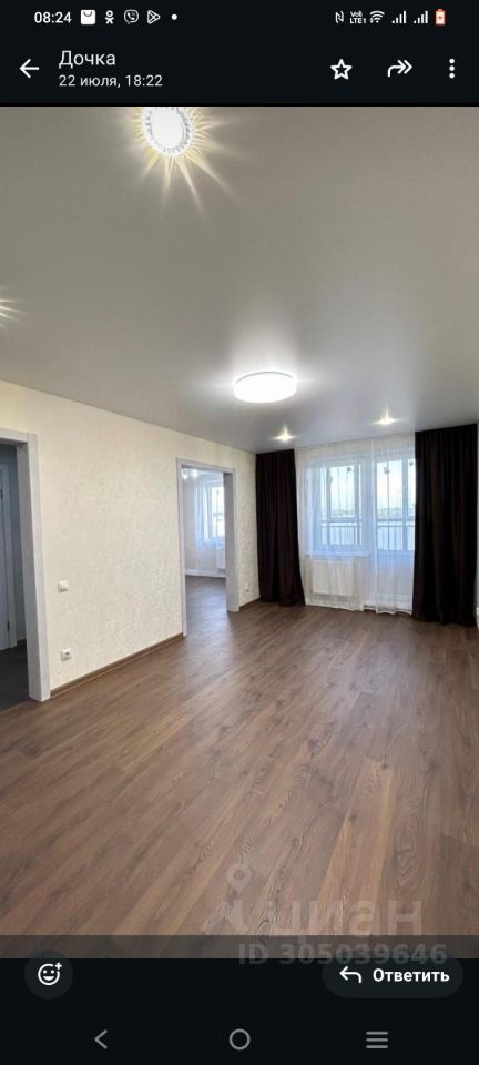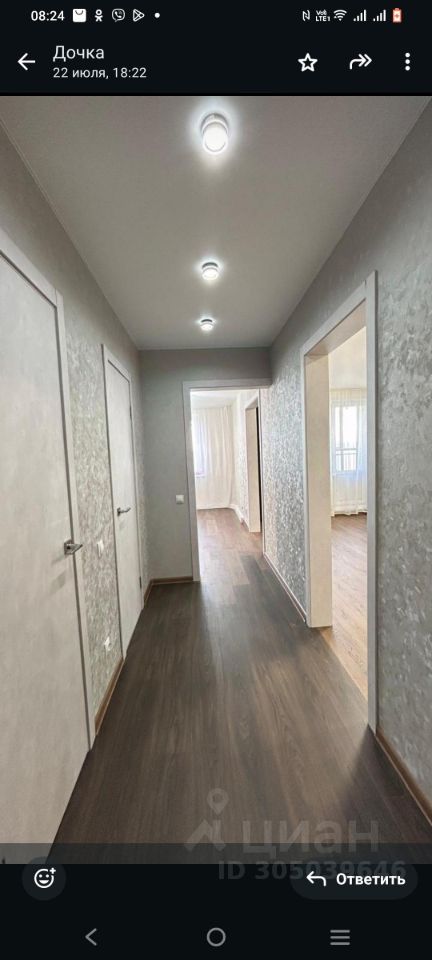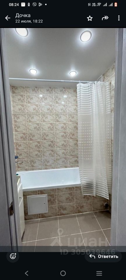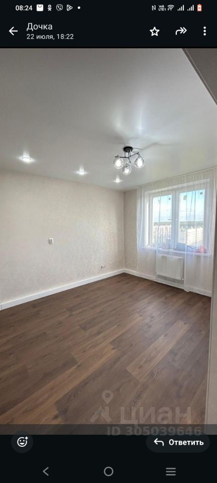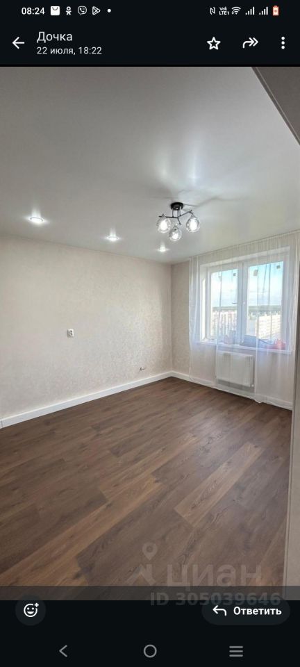 В квартире сделан современный ремонт, все готово для комфортного проживания. Светлая и просторная кухня оснащена необходимой техникой: варочная панель, духовой шкаф, вытяжка и холодильник. В комнате установлены удобная мебель и шкафы для хранения вещей. Санузел совмещенный, оформлен в светлых тонах, установлена современная сантехника.