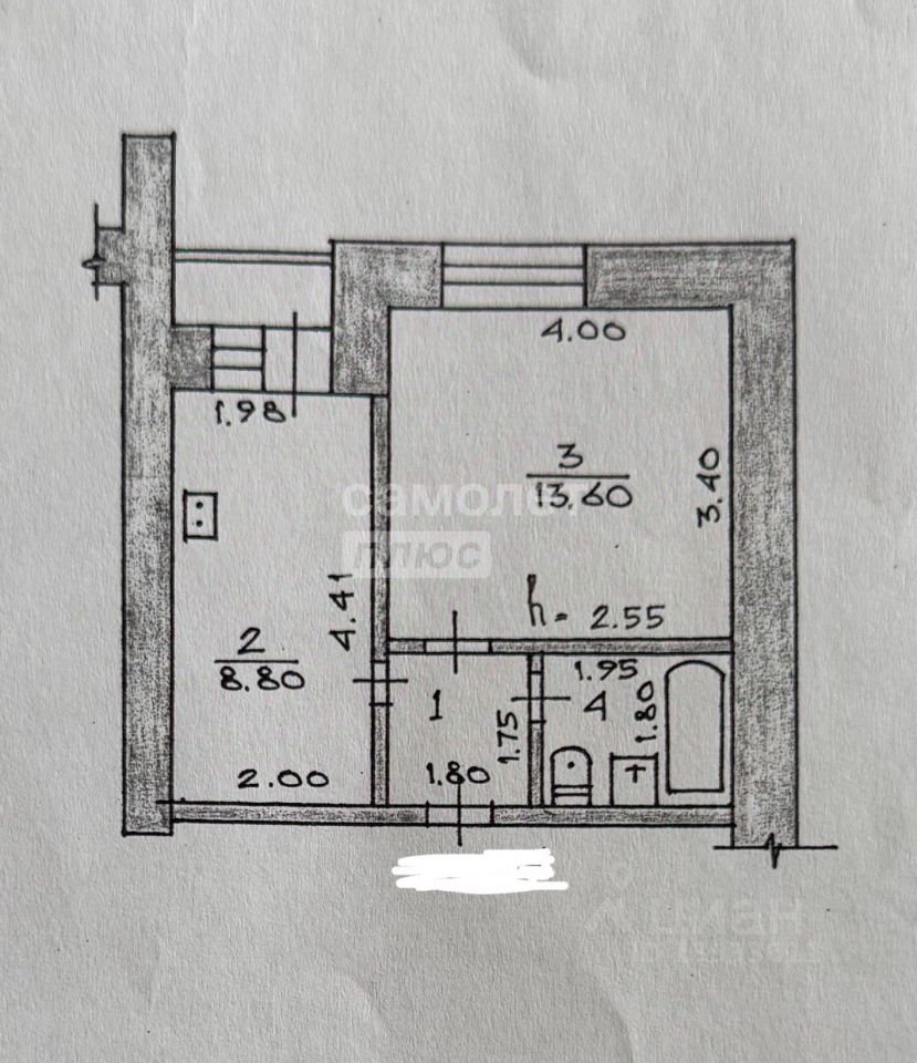 Характеристика: Общая площадь 30,1 кв.м. Жилая комната - 13,6 кв.м. Кухня- 8,8 кв.м.