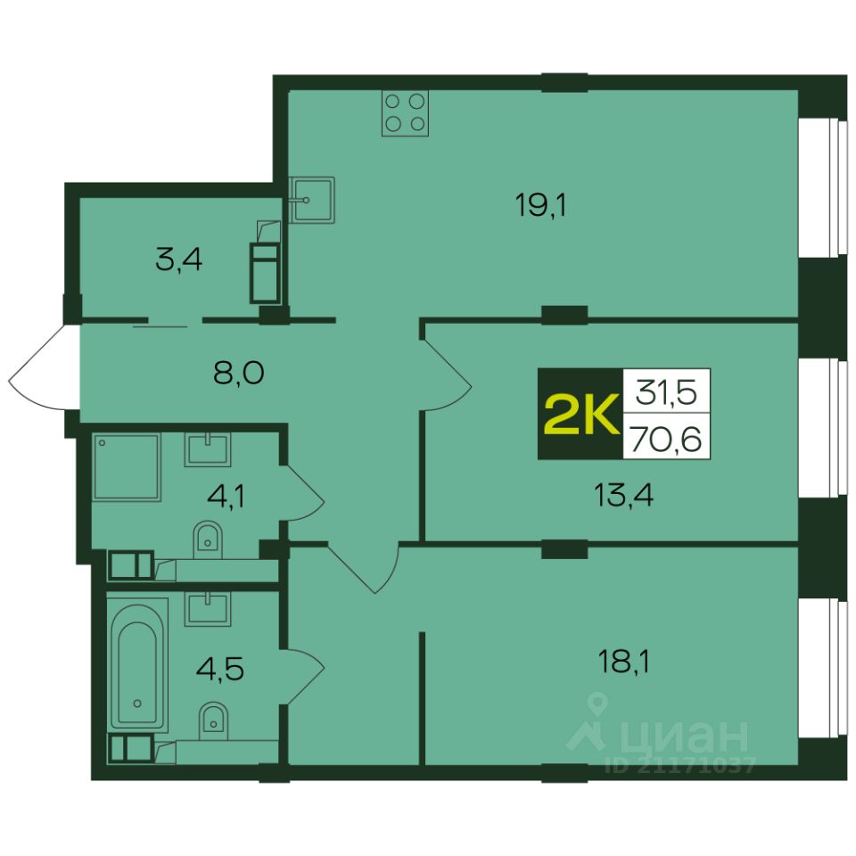 Общая площадь70,6 м2
