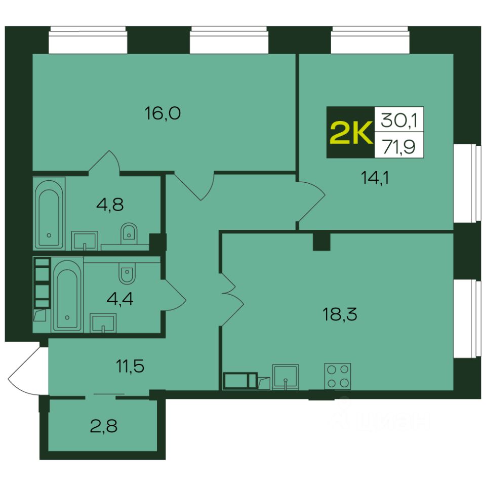 Общая площадь71,9 м2