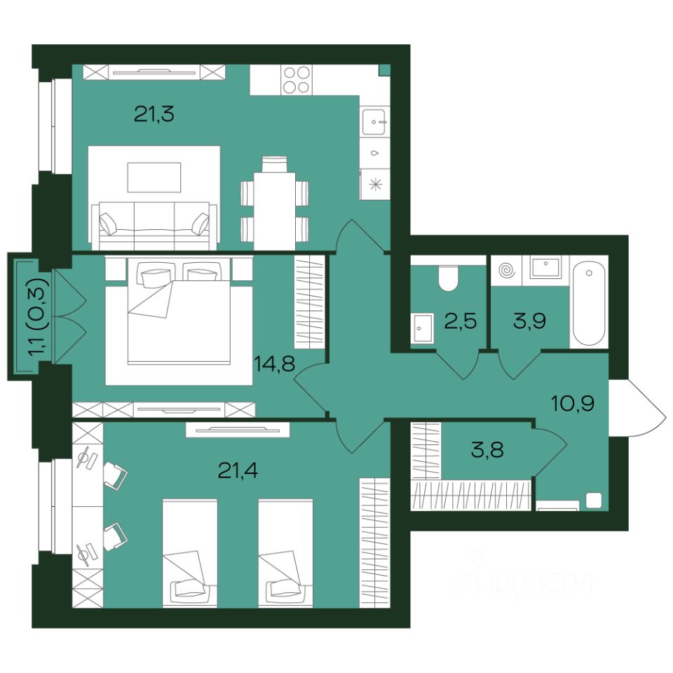 продам 2-к, проспект Чебоксарский10 533 600 ₽