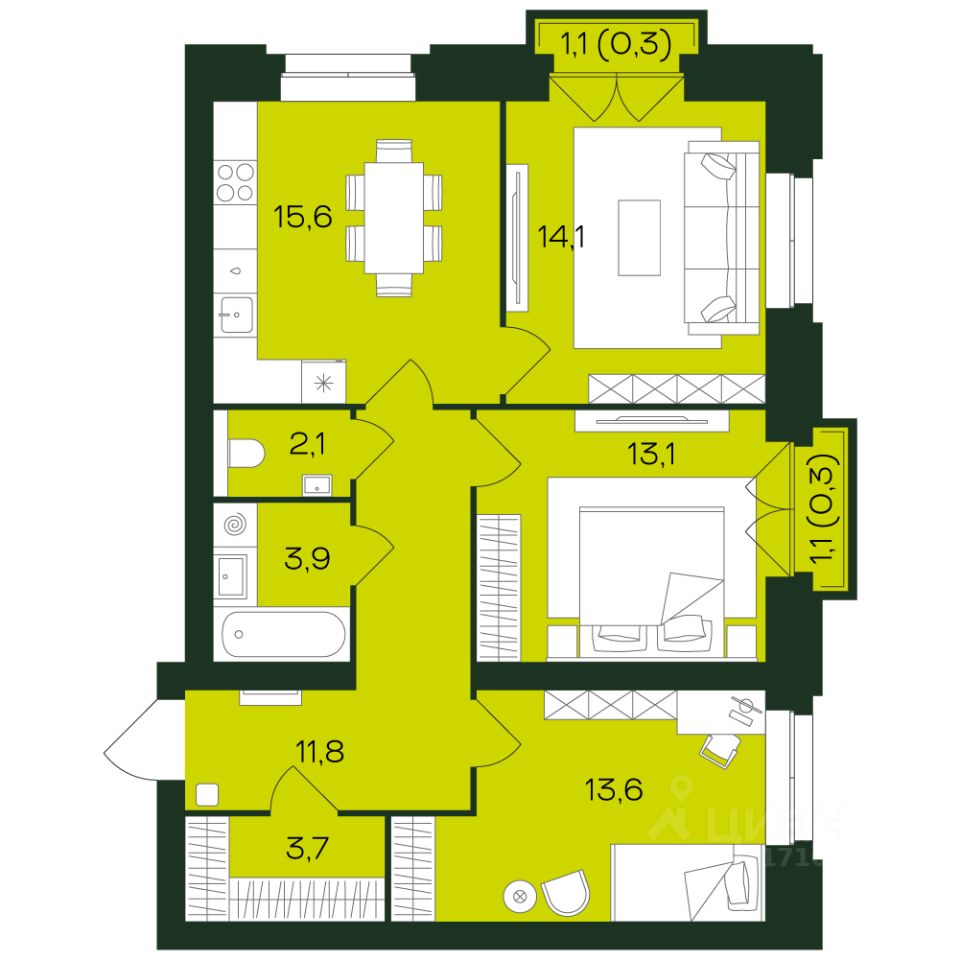 продам 3-к, проспект Чебоксарский10 440 500 ₽