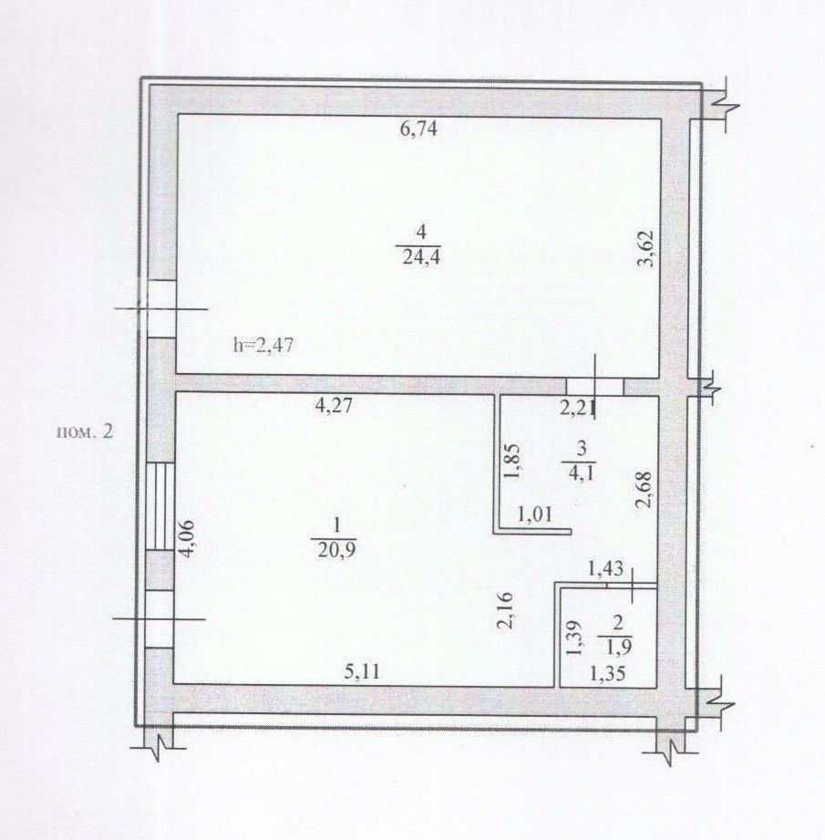Продается одноэтажное нежилое помещение 51,3 квадратных метра. Помещение представлено 2 комнатами: Первая комната - классический офисный ремонт: Окно пластиковое, пол линолеум, стены под покраску, потолок ПВХ-панели, санузел ПВХ-панели,