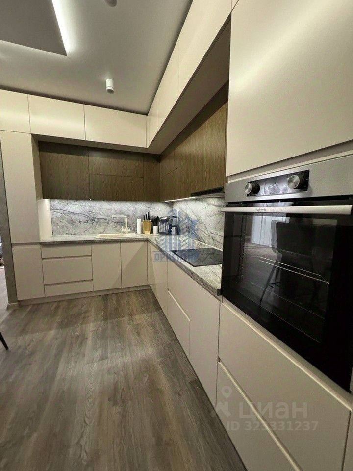 - Современная техника: Вся встраиваемая техника включает варочную панель, духовой шкаф, холодильник, отдельную морозильную камеру и посудомоечную машину — все, что нужно для комфортного проживания.