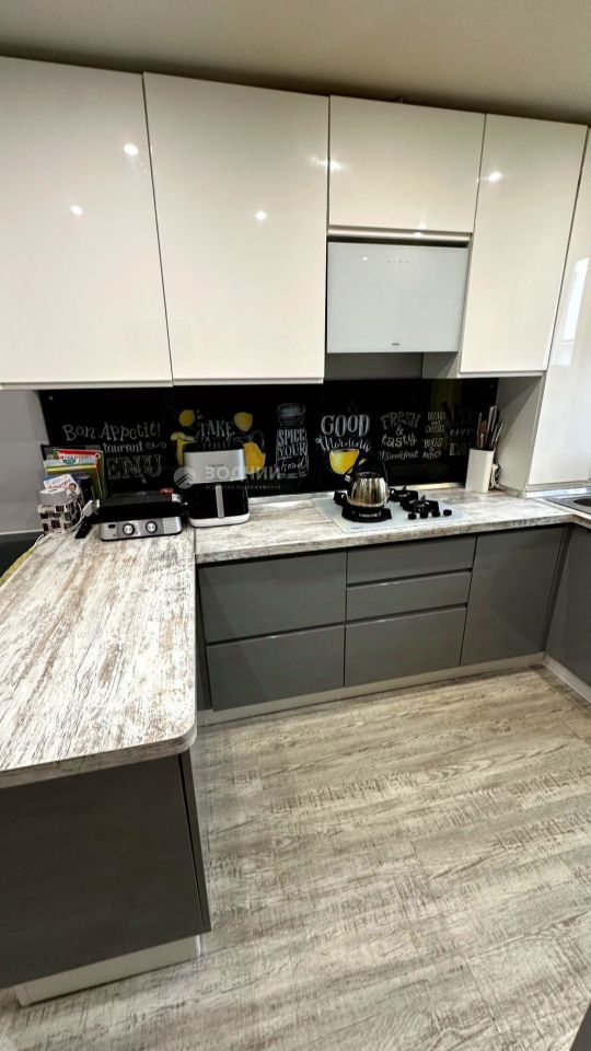 Продумано все до мелочей - в столешнице скрытая розетка, розетки и интернет кабель проведены во все возможных местах подключения, обои под покраску, если захочется поменять цвет стен