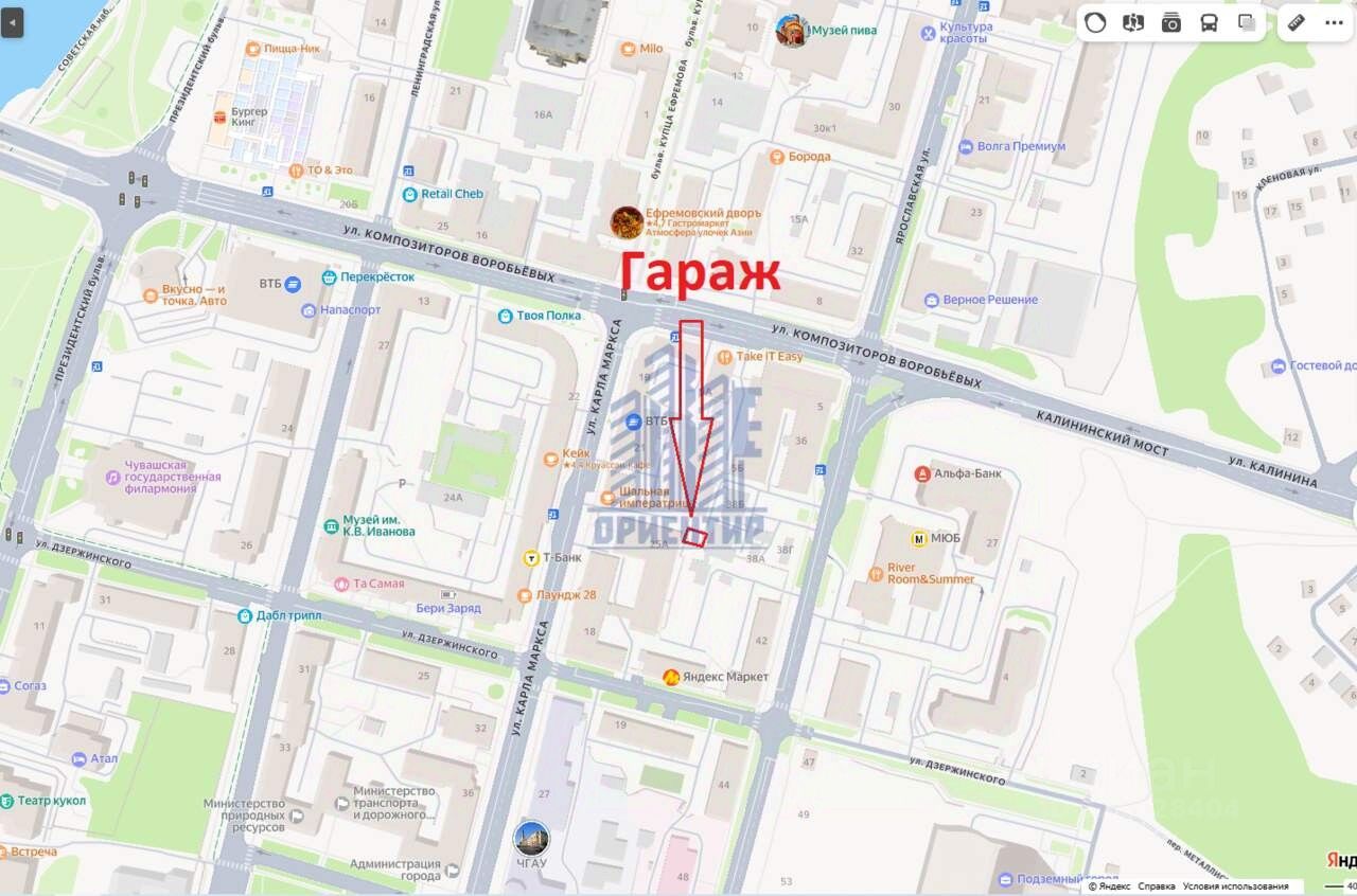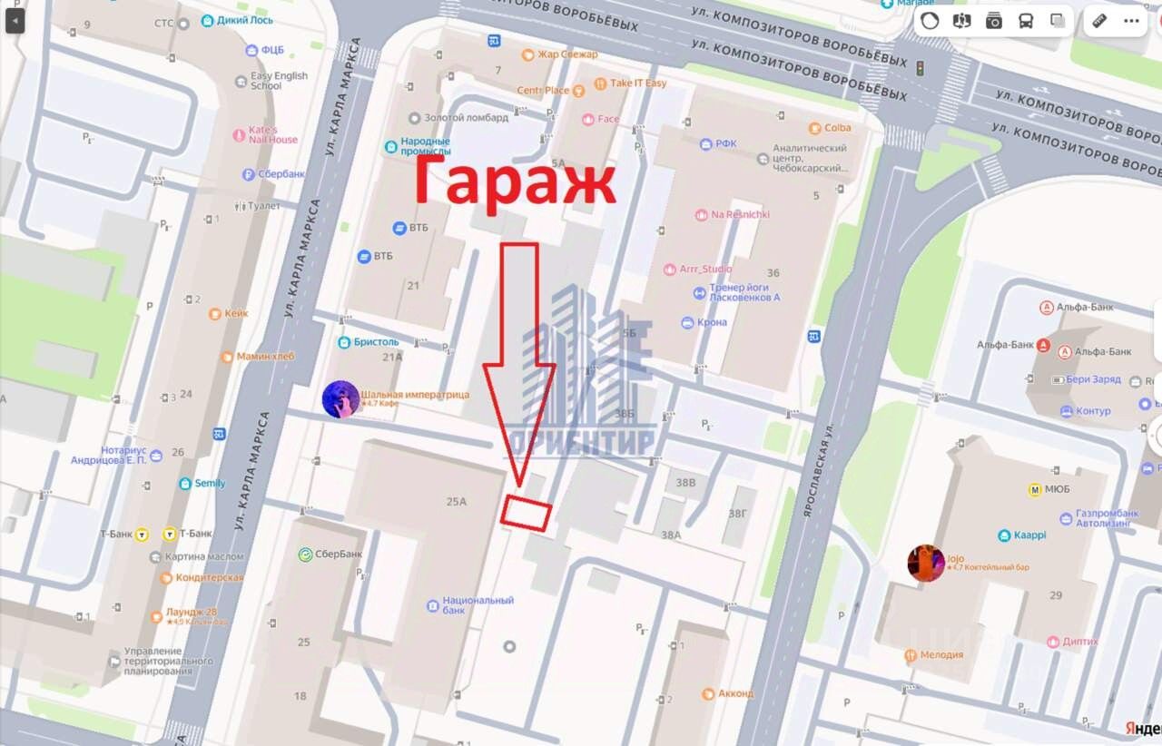 Продаем гараж (21,4 кв/м) на Ярославской 42, в составе ГК ''Кайбулка''. Находится прямо за Национальным банком Чувашии. Точное расположение смотрите на фото в объявлении.