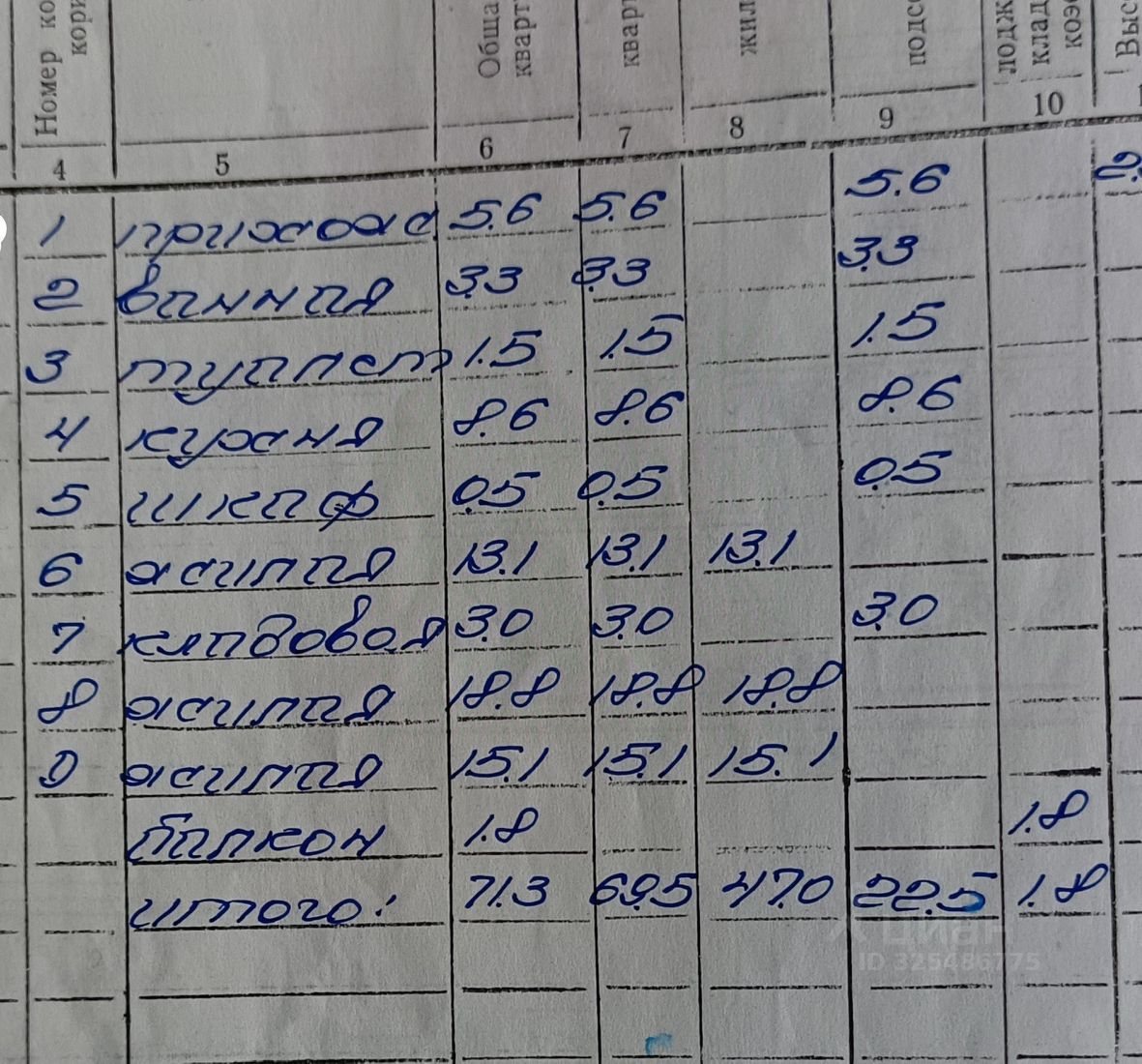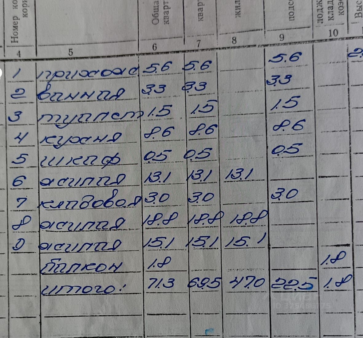 Общая площадь квартиры с лоджией составляет 71 кв. м. Площадь кухни — 8,6 кв. м, спальные комнаты 15,1 и 13,1 кв. м., зал - 18,8. В квартире была сделана частичная перепланировка, в частности, гардеробная с коридора, один вход в детскую комнату.