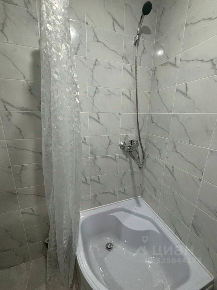 Входная металлическая дверь и пластиковое окно. Внутри совмещенный санузел с душевой и местом под установку стиральной машинки