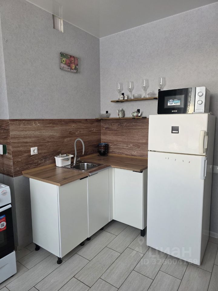 На кухне новая электрическая плита, новый кухонный гарнитур, микроволновая печь, холодильник.