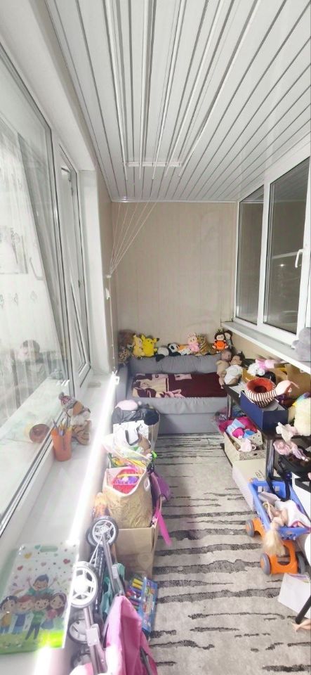 Окна выходят во двор. Удобная планировка, утеплённая лоджия 9 кв.м. с системой подогрева пола — отлично подходит как зона для игр или отдыха.