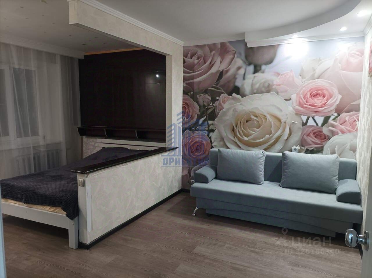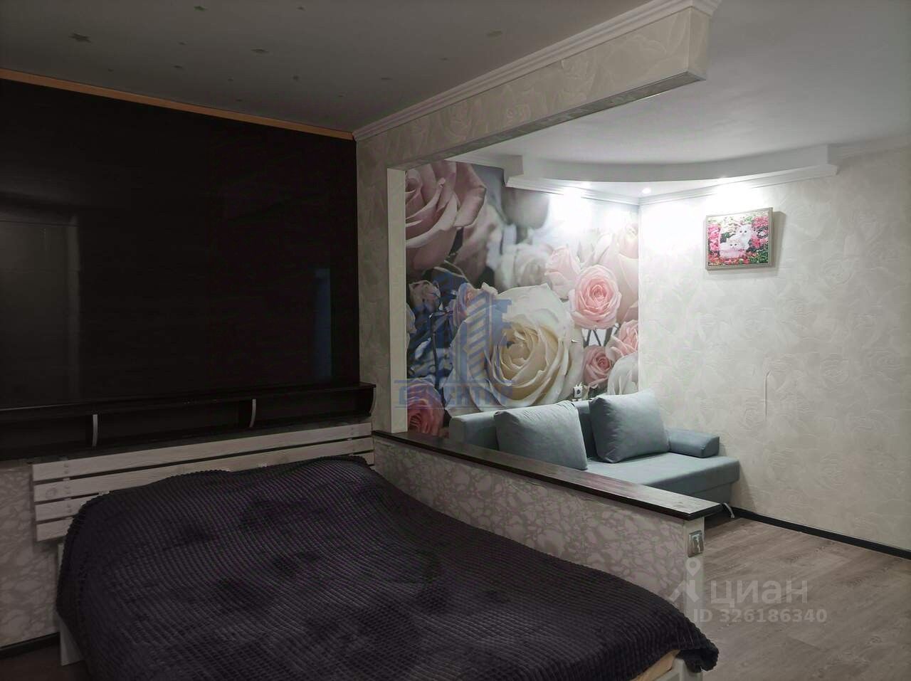 В квартире есть все необходимое для комфортной жизни: диван, кровать, холодильник, стиральная машина.