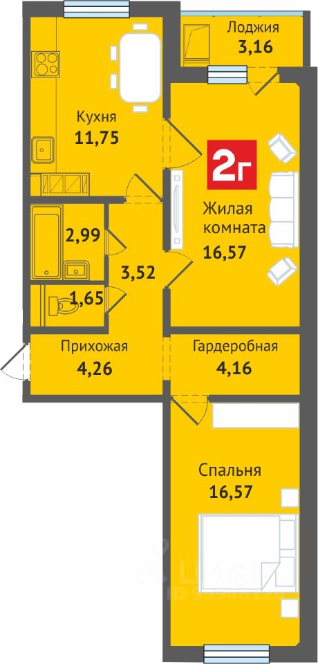 продам 2-к, Изумрудная, 65 927 000 ₽