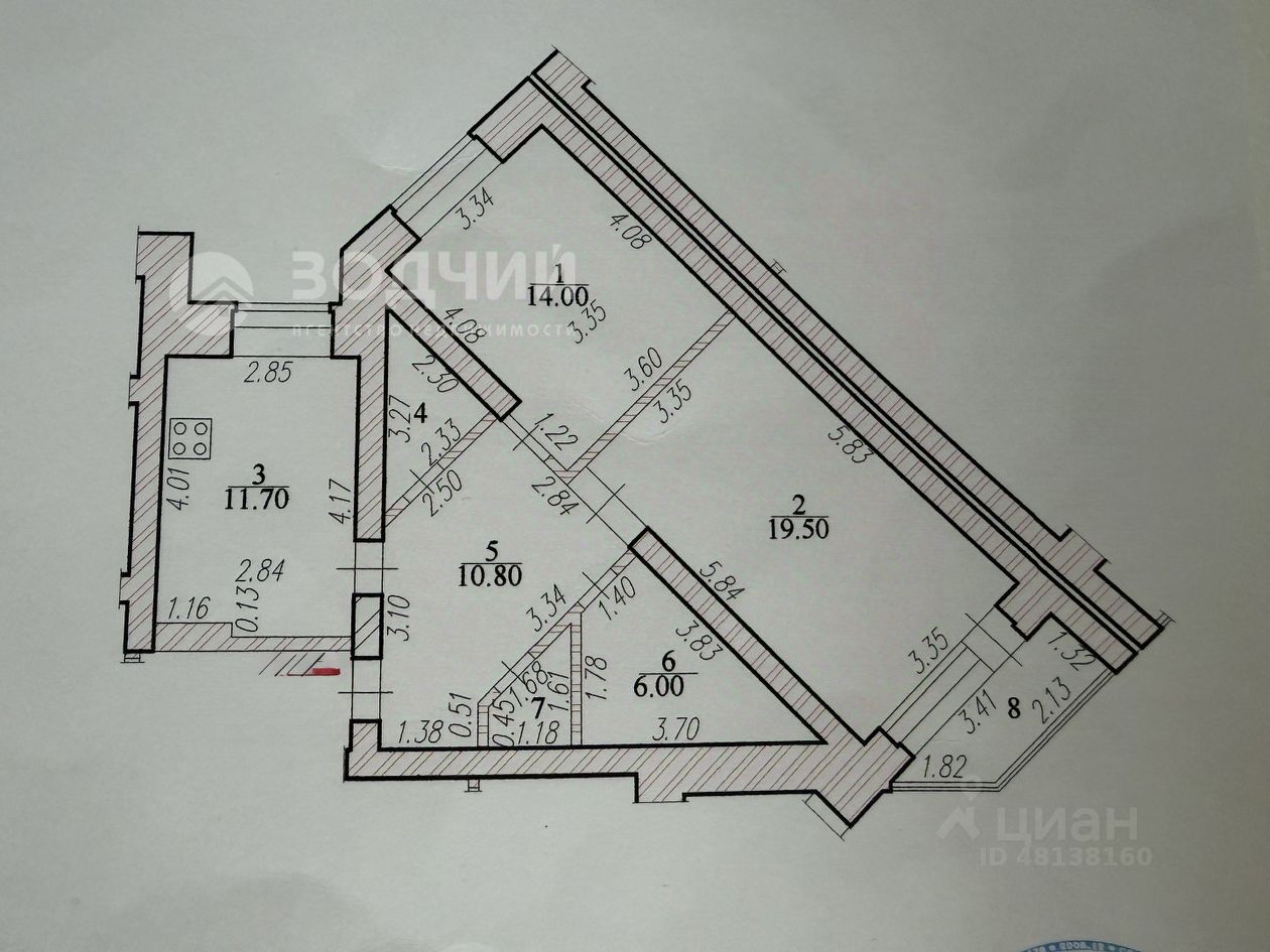 -Общая площадь квартиры 69.5 кв. м. -Просторная гостиная 19,5 кв. м. -Спальня в 14 кв. м. -Кухня размером 11,7 кв. м. -Гардеробная 4 кв. м.
